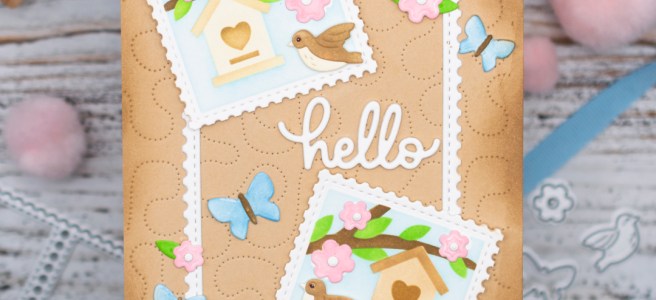 Happy Friday, friends! Today I'm sharing another card featuring some of the products from Waffle Flower's Spring Time release. I used the Postage Collage Egg Hunt Stencil and the coordinating Egg Hunt Icons Dies to create this charming birdhouse design. The Egg Hunt stencil has numerous spring and Easter-themed images that will fill in your … Continue reading A Springtime Hello with Waffle Flower