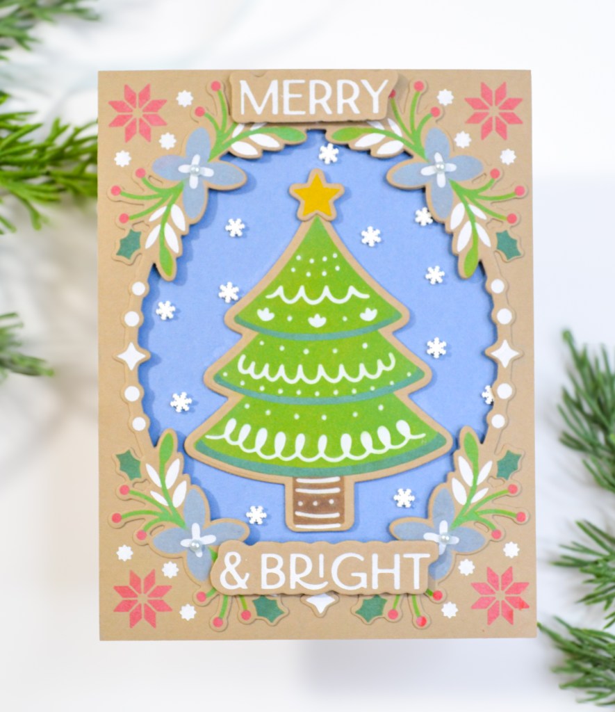 I don’t use Distress Oxides very often but when I do, it’s almost always on kraft. I love the intensity of color you get, even on a darker cardstock. Lifting away the stencil is almost magical with oxides, kinda like watching embossing powder melt or lifting away a mask when stamping. Or, like lifting away the foil when hot foiling. For this project, instead of using the usual metallic foils, I used white foil. It was my first time using white and I love the impact it has against the kraft cardstock. I foiled part of the Folk Art Frame Bundle from Waffle Flower Crafts, the optional foil plate for the frame and for the tree. This bundle is so amazing with its interchangeable layered stencils, hot foil plates and of course, coordinating dies. You can use all stencils or some of the stencils with the hot foil plates or just the foil plates… honestly, there are so many options it was a little overwhelming. But once I spent some time playing with everything and became familiar with all of the components, I was hooked. Plus, Waffle Flower adds etched details of the stencil design to their layered stencils, making it so easy to align everything. This project is actually the first of many using this bundle because I was having so much fun! I’ve listed below all the details, and thanks so much for visiting!