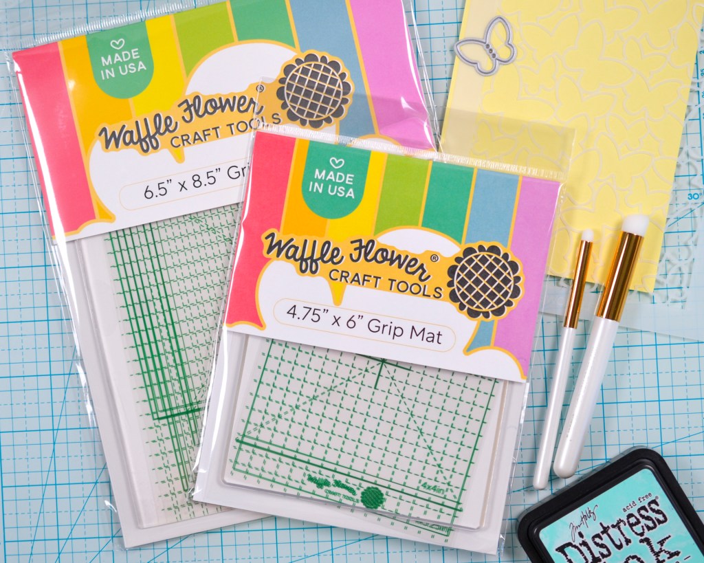Woo Hoo! The re-launch of the Waffle Flower Grip Mats is live, and you can get yours now! I’m so excited to share with you how awesome these Grip Mats still are and how, I believe, they are an invaluable addition to your craft room.