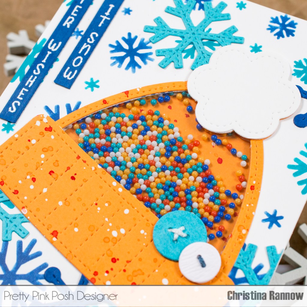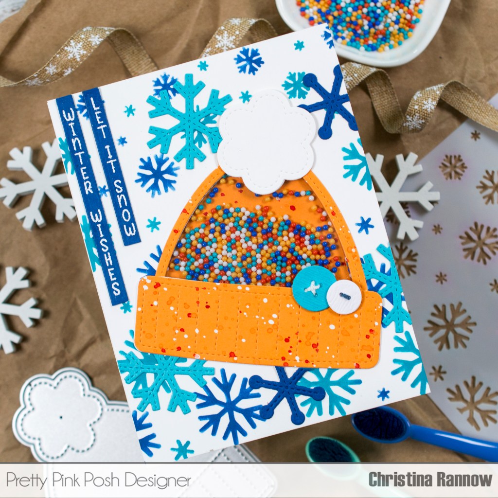 Hello! Today I’m sharing a happy and colorful winter shaker card showcasing many of the new things from the latest Pretty Pink Posh Holiday Release. This fun card is super easy to put together, so let’s get started!