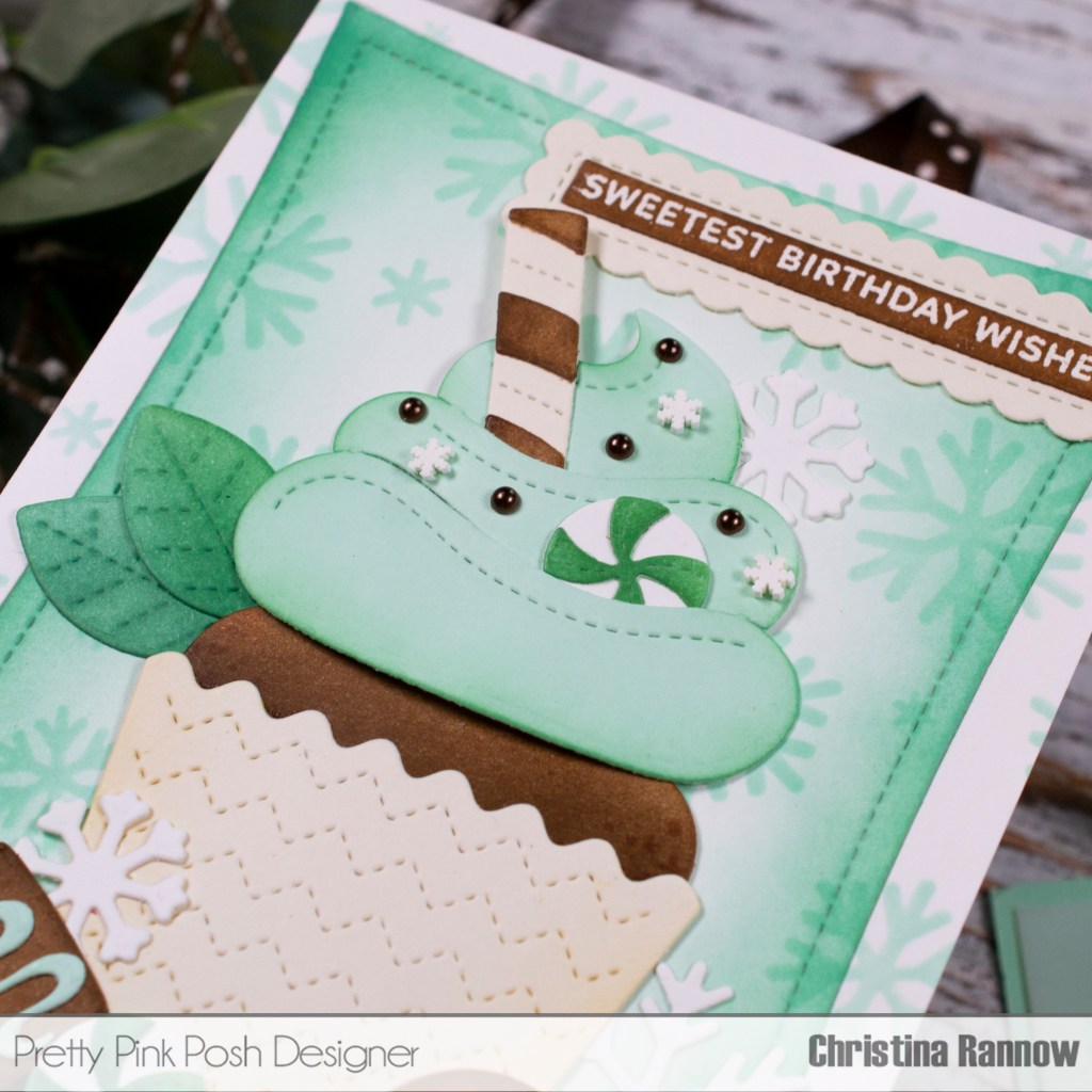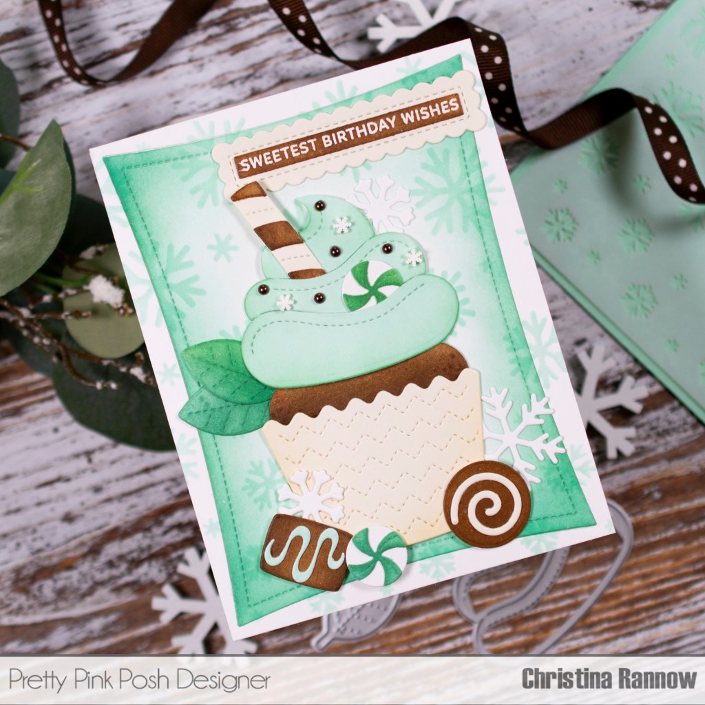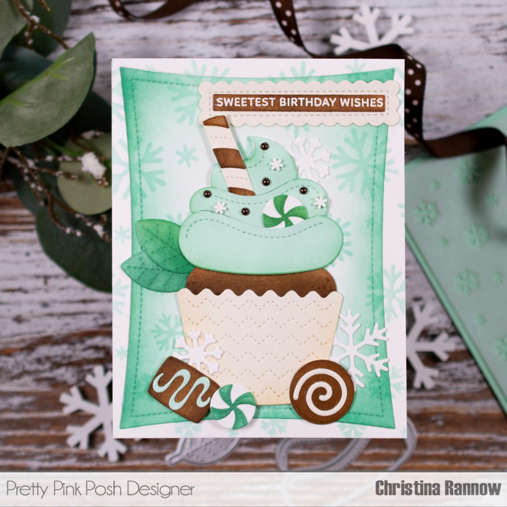 I have the sweetest mint chocolaty treat to share with you today, and it’s full of some of the best Pretty Pink Posh goodies. I mixed and matched multiple cupcake and mug sets to get the perfect combination for this winter birthday card created with inked die cuts. Keep reading to get all the minty fresh details on creating this card as well as the project-specific products I used. For my favorite everyday supplies, click here. Thanks so much for stopping by to read all about this sweet winter birthday card!