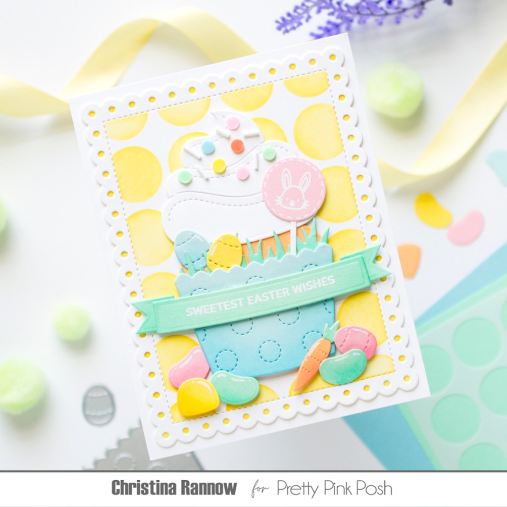 Thanks so much for stopping by today to read all about this super sweet Easter card featuring Pretty Pink Posh dies, stamps, stencils, and, of course, embellishments. Happy Easter!