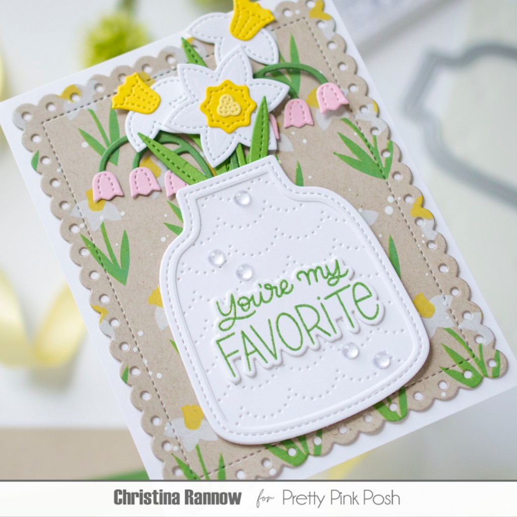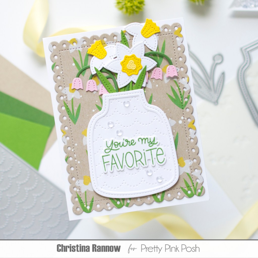 Welcome to day 2 of sneak peek inspiration for the upcoming Pretty Pink Posh release! This is a release you won’t want to miss, friends. There are beautiful new florals, new stencils, and of course, new shakers! There are 4 days of sneak peeks to get you inspired, and part of today’s sneak peeks include the new Vase Shaker, which I used to create the card I’m sharing today. One of the best things about shaker dies is that you aren’t limited to using them only as shakers. You can use them as regular dies like I did here and still get beautiful results. Be sure to check out all the sneak peeks today, here and here, where you’ll find shaker inspiration and so much more!