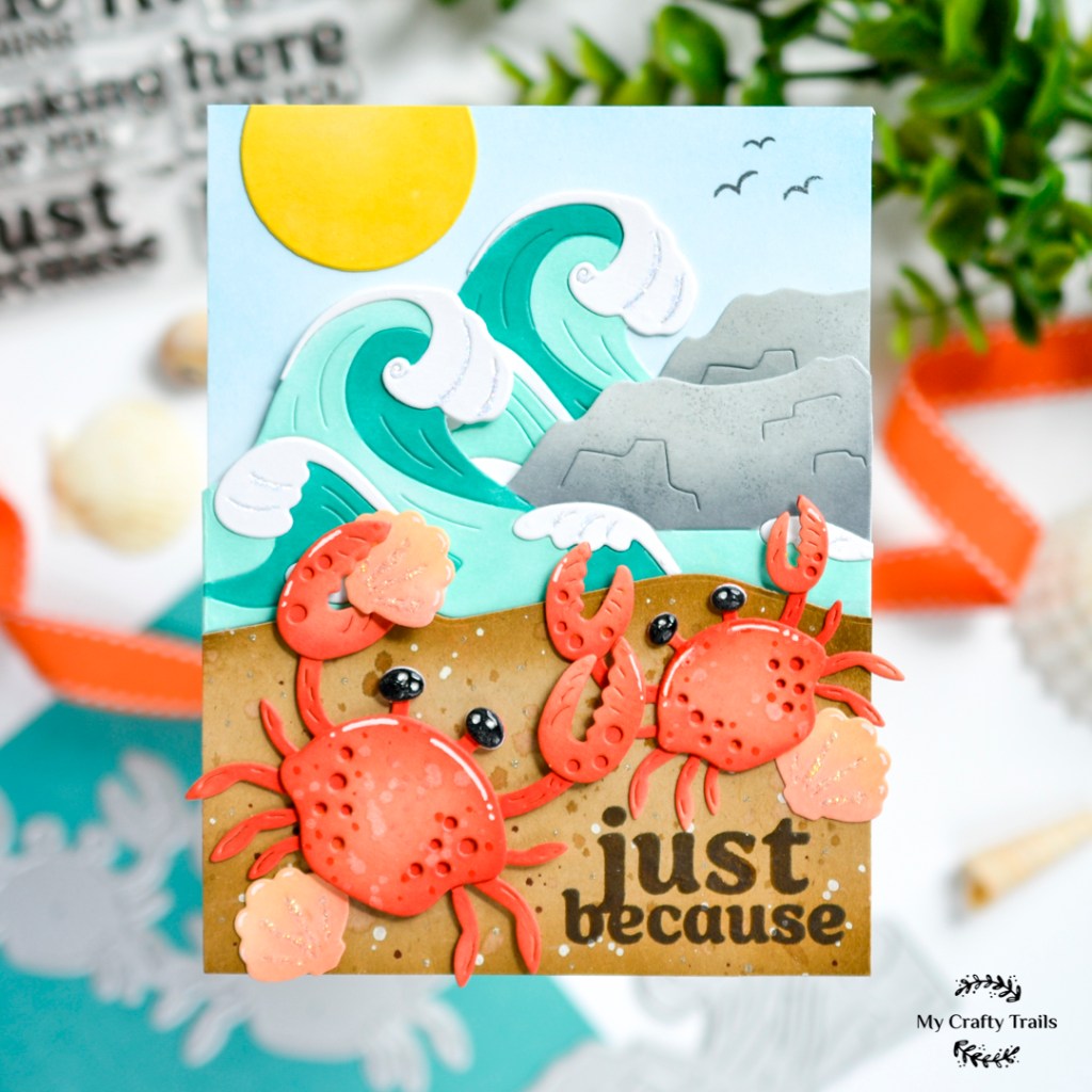 Hi again! Today I’m sharing a crabby card I made using products from Waffle Flower’s Sneak Peek kit to the June release. The whole release is available now, but I found everything, well, almost everything, I needed to make this card in the kit. Let’s take a look at the supplies I used and then how this card came together.
