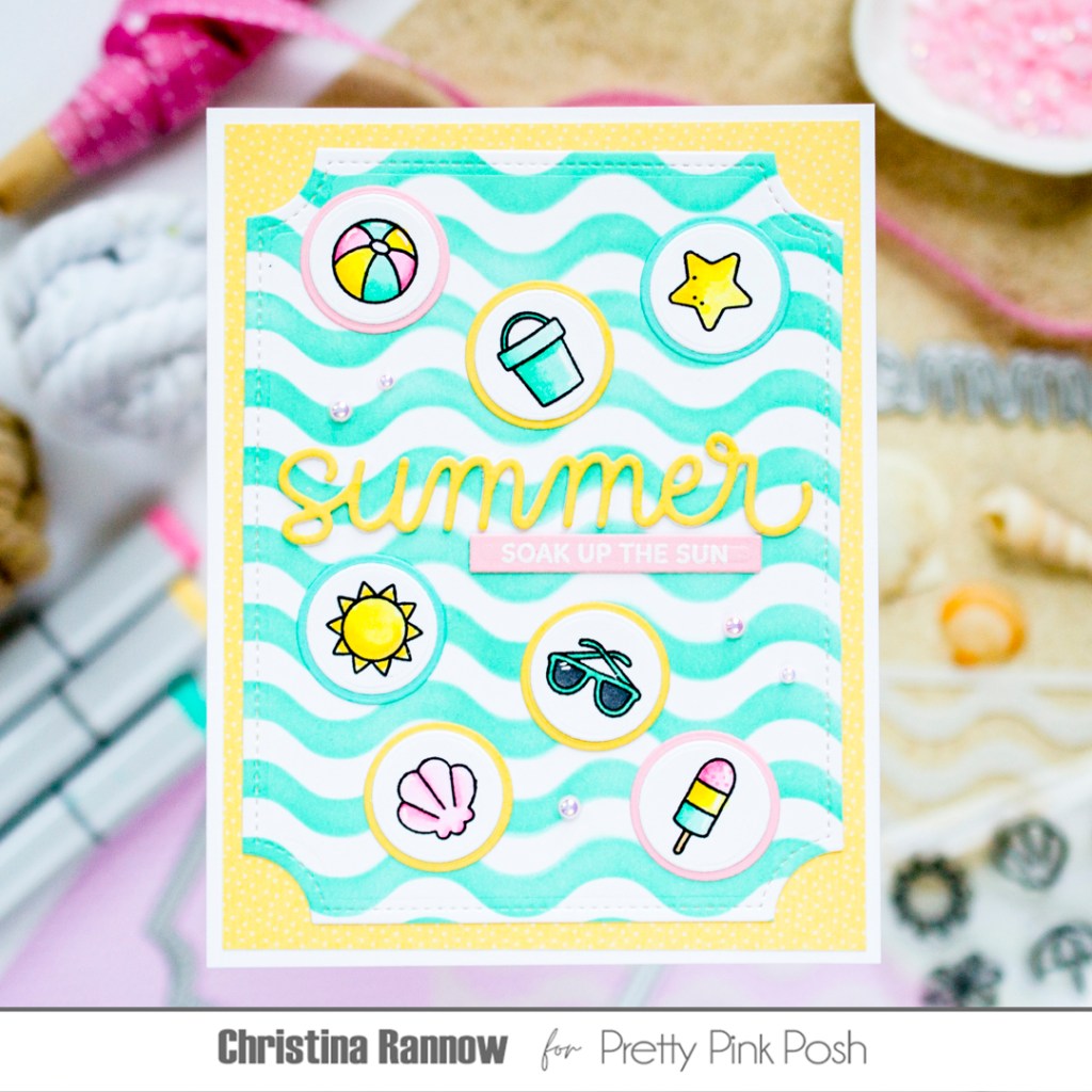 Join us for Summer Theme Week, July 14th – July 20th, over at Pretty Pink Posh, where you’ll find nothing but good vibes and 15% off the goodies in the Summer Section! Plus, over on the PPP blog this week, you’ll find all the inspiration you need to start having some crafty fun in the sun! I joined the party with this sweet card featuring the 3×4 Summer Icon Stamp set. These little images are the perfect size to pop into any of your summer-inspired papercrafting projects. Keep reading to get all the details about this pretty pastel design with poolside vibes! Let’s jump in!