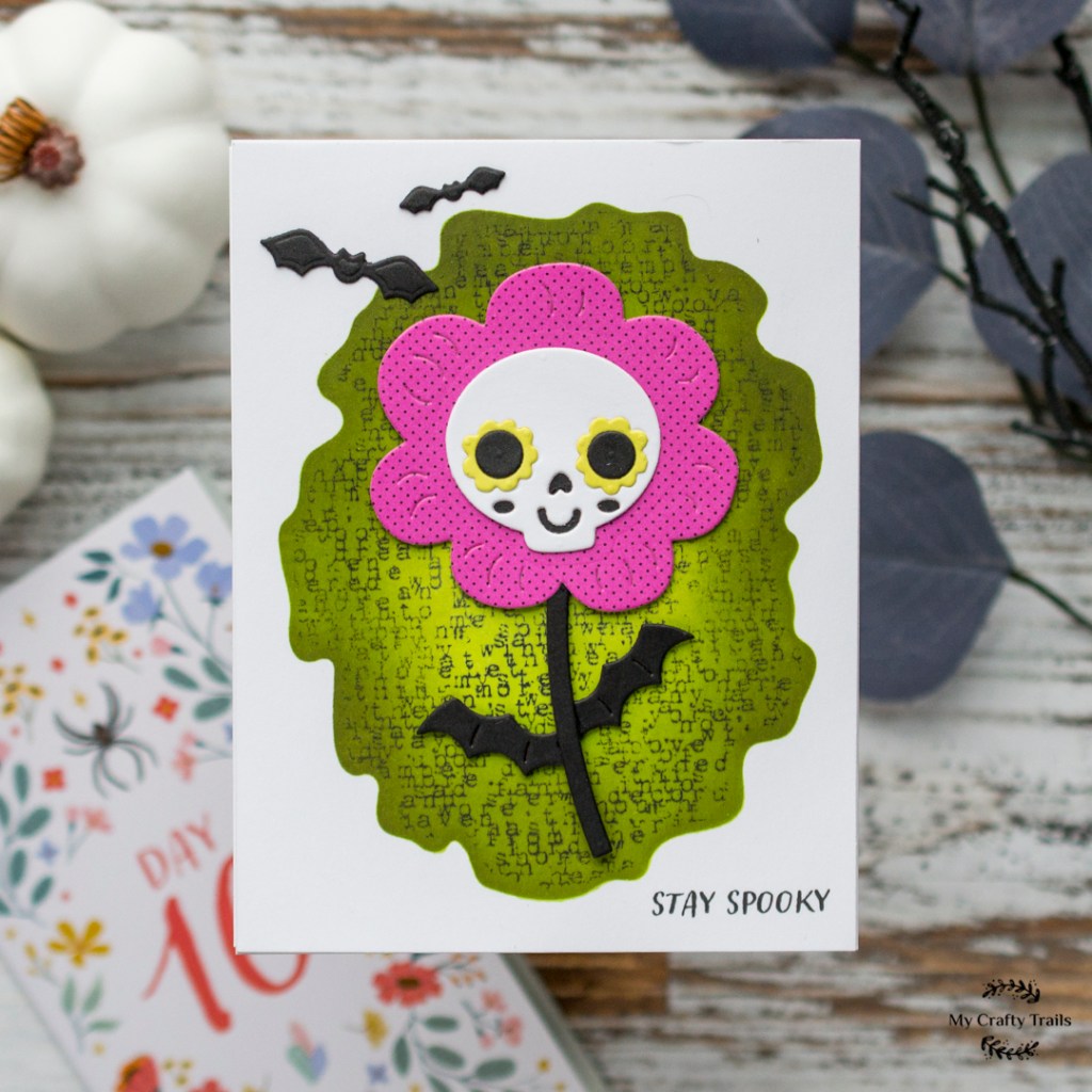 Here we are counting down the last few days of Spellbinders 13 Days of Craftoween! Day 10 features this spooky cute bloom that is the focal point for this quick and easy Halloween card. A creepy stenciled and stamped background along with a simple stamped sentiment completes this spooktacular card design. Check out today’s short reel, and then keep scrolling to find the supply list!
