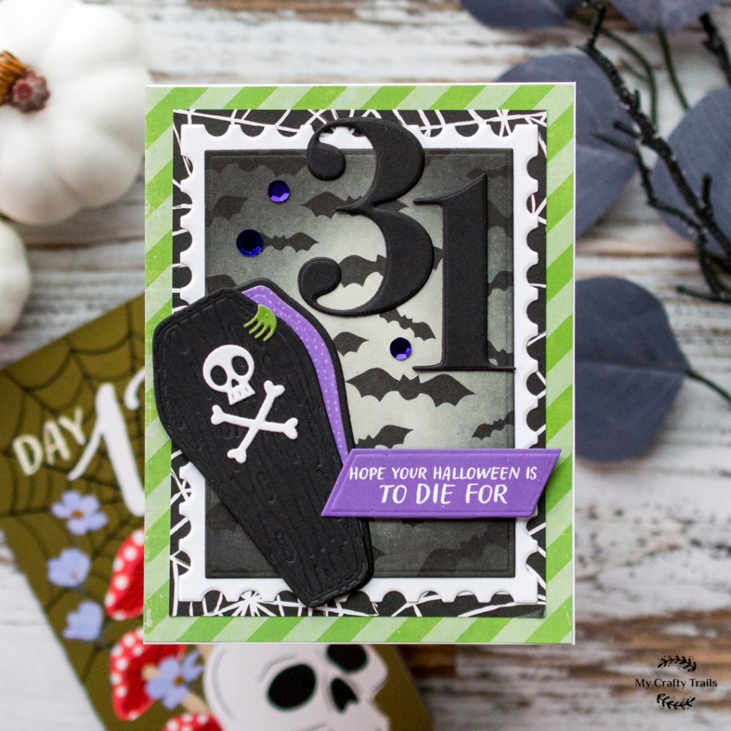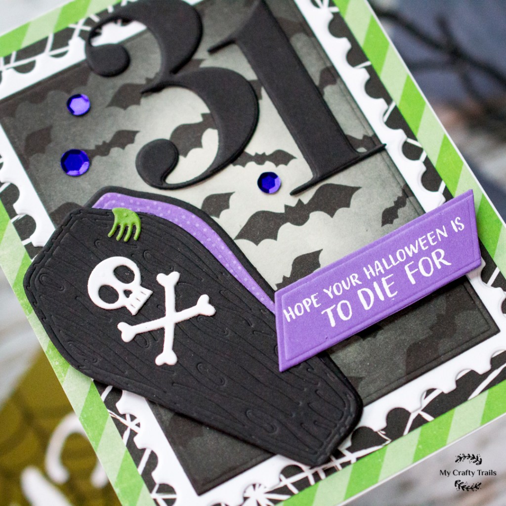 And that’s a wrap! Today, I’m sharing Day 13, the final day of Spellbinders 13 Days of Craftoween! I combined big, bold numbers and a stenciled background with a postage frame for a spooky yet whimsical design. Take a quick peek at the last reel in this series!