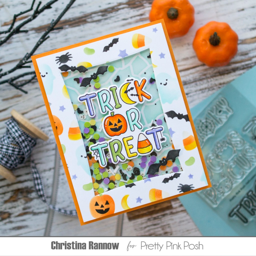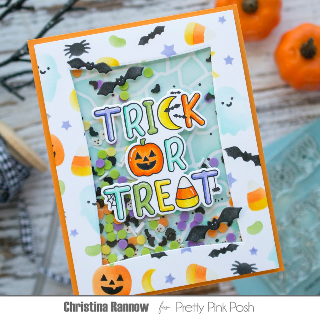 Happy Halloween, friends! I couldn’t resist making one more Halloween card this season, and I pulled out some Pretty Pink Posh favorites to whip up a fa-boo-lous shaker card. I used two different stencils, filled it with Spooktacular clay confetti, and finished with a Halloween Word Scene. Let’s get started!