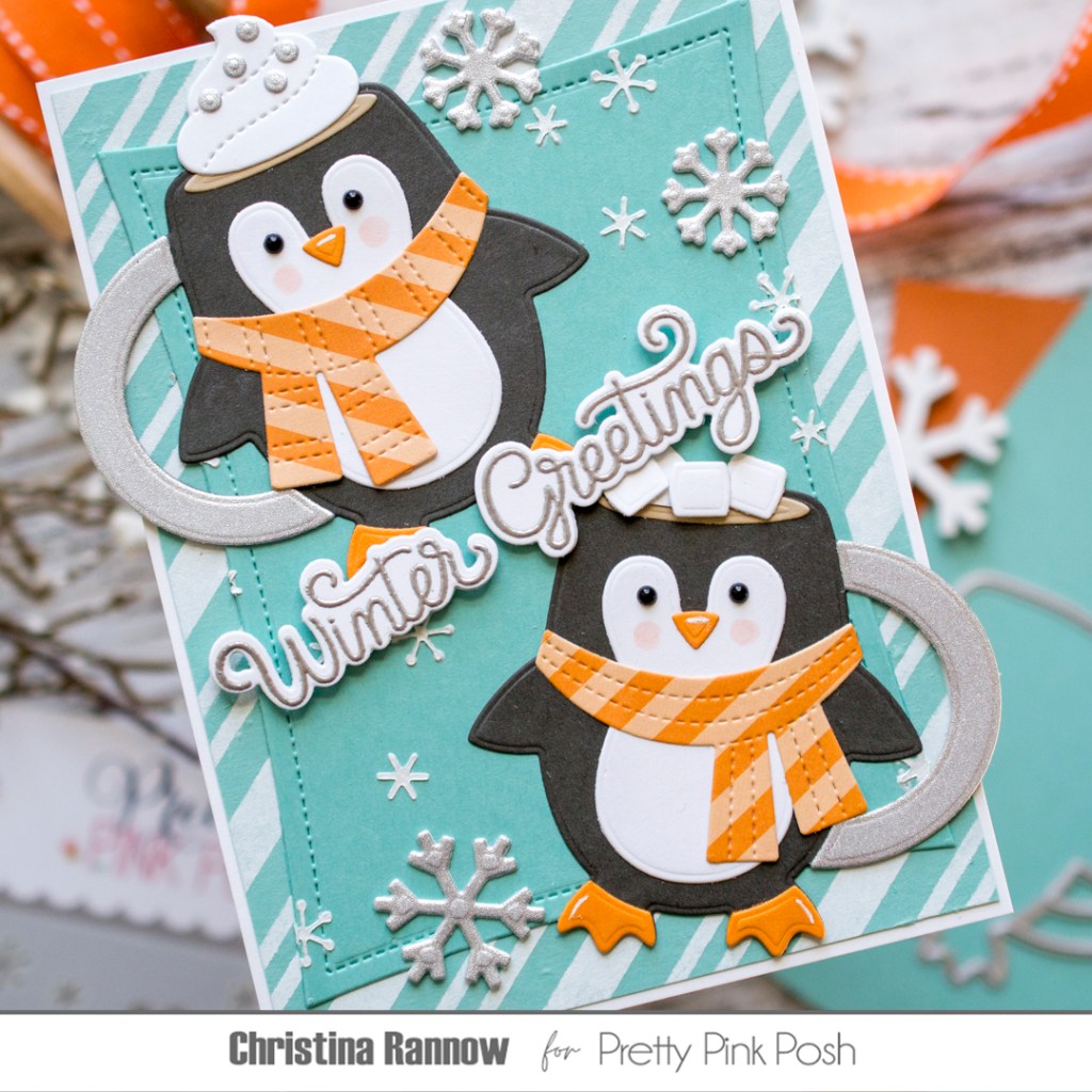 Thank you so much for stopping by to check out my festive wintertime card featuring the new Penguin Mug Dies from the latest Pretty Pink Posh release!